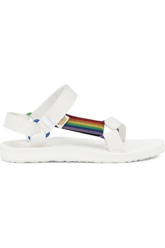 Les sangles en nylon fabriquées en polyester recyclé REPREVE à l’aspect métallique apportent une touche supplémentaire de chatoiement à l’Original Universal et à sa vocation déclarative. Conçue dans esprit d’égalité et d’inclusion, cette audacieuse sandale pride agrémente l’Original de touches de couleur jusque sur sa semelle extérieure. Pour accompagner la voix de la communauté LGBTQ+ et soutenir des libertés durement acquises, Teva fait un don de 35 000 $ à une organisation LGBTQ+.